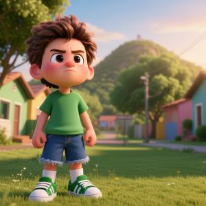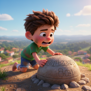 Theo, um menino de sete anos com cabelos castanhos sempre despenteados e um sorriso que não cabia no rosto, vivia em um mundo de bolas. Não qualquer tipo de bola, mas sim a sua bola de futebol, branca e listrada, que era seu maior tesouro. Todas as tardes, no quintal seguro e gramado de sua casa, ele chutava a bola contra a parede, imaginando golos espetaculares em finais de campeonato. O mundo de Theo era simples, divertido e macio, exatamente como a sua bola. Ele ouvia os garotos mais velhos da vizinhança falarem sobre a “Pedra Redonda”, uma lendária esfera de pedra no topo do Morro do Sol, que diziam ser impossível de alcançar. Diziam que o caminho era cheio de espinhos e pedras afiadas, e que ninguém jamais havia conseguido tocar naquela bola de pedra. Theo apenas sorria, continuando a chutar sua bola macia. Afinal, para que serviria uma bola de pedra, se não podia chutá-la?