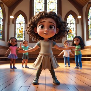 Marly quase não podia acreditar! Era um milagre. Ela correu para contar a notícia a todos os seus pequenos bailarinos. Entretanto, no dia da apresentação na igreja, um novo desafio surgiu. O sistema de som falhou e não havia como tocar as músicas ensaiadas. As crianças começaram a ficar nervosas, e a pequena artista sentiu o pânico tomar conta de si. Olhando para todos os expectadores, ela lembrou-se de por que estava fazendo tudo aquilo. Então, com um sorriso, Marly anunciou: “Vamos dançar mesmo sem música! Vamos mostrar nossa gratidão a Deus através de nossos movimentos”. E assim fizeram. As crianças dançaram em silêncio, expressando com seus corpos a alegria e a gratidão que sentiam. No final, todos na igreja se levantaram em aplausos, emocionados com a apresentação. Não apenas arrecadaram o dinheiro necessário, como também receberam um convite para se apresentar em um evento maior da comunidade.