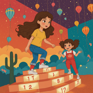 Naquela noite, Melissa deixou os cadernos de lado e foi dormir mais cedo. Sonhou que caminhava por um corredor iluminado por lanternas coloridas. Ao final, havia um arco enfeitado com balões em forma de números: 2, 5, 7, 9… Todos flutuando e piscando como se fossem mágicos.