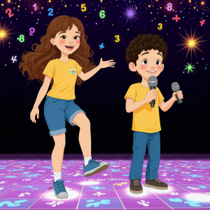 — Bem-vindos à Festa da Tabuada! Aqui, quem dança e aprende multiplica alegria!