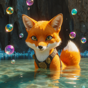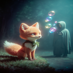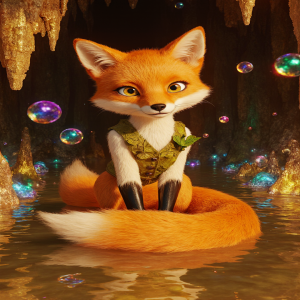 Numa dessas explorações, adentrou um recanto virgem da floresta onde um riacho cantava uma melodia diferente. Suas águas não refletiam apenas a luz; elas a armazenavam, cintilando como se fossem líquido estelar aprisionado entre pedras musgosas. Ao inclinar-se para investigar, Duda descobriu o prodígio: esferas iridescentes dançavam na superfície, não como bolhas de sabão, mas como lantejoulas líquidas que capturavam arco-íris inteiros em seu bojo. Quando sua pata tocou uma delas, um formigueiro mágico percorreu seu corpo – não calor, mas uma efervescência de alegria que fez suas orelhas tremer e seu rabo mexer num ritmo desconhecido.