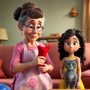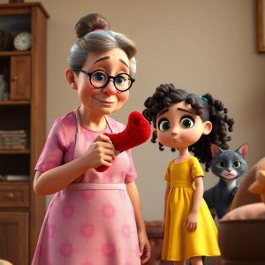 A sala secreta estava agora iluminada por uma luz suave e dourada, que parecia emanar das meias flutuantes ao redor do tear mágico. Dona Flor e Mia estavam em silêncio, absorvendo o que acabaram de descobrir. Jabari, com seus olhinhos brilhando de satisfação, parecia saber que as duas haviam compreendido o segredo – e, com isso, uma nova etapa da história começava a se desenrolar.