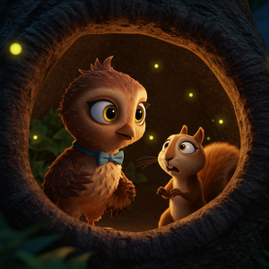 Naquela noite, Noctua não apenas ajudou os animais a dormir, mas também descobriu sua própria força interior. E quando finalmente voltou para seu galho no carvalho antigo, ela sabia que tinha vivido a verdadeira Noite da Coruja Mansa – uma noite onde a coragem superou o medo e a gentileza trouxe paz para todos na Floresta Encantada.
