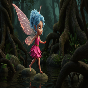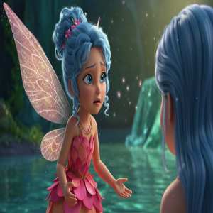 O reflexo de seu rosto assustado ondulava nas águas escuras, distorcido por sombras que pareciam rir de seu impasse. Intrigada e um pouco assustada, Melina aproximou-se da borda da floresta, algo que nunca havia feito antes. Lá, deitada sob uma árvore gigante, estava sua amiga Jujuba, uma fada um pouco mais velha que ela.