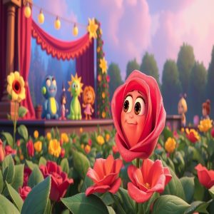 Ela inclinou-se levemente, tocando suavemente a violeta que a havia chamado para se unir. “Obrigada… por me mostrarem que eu não posso brilhar sozinha”, disse, com a voz cheia de sinceridade. A pequena violeta respondeu com um sorriso tímido, e as margaridas a cercaram, como se celebrassem a nova humildade da Rosa.
