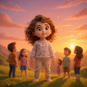 O dia escorreu ligeiro, recheado de gargalhadas, corridas pelo quintal e descobertas simples que Aurora transformava em agradecimentos. Quando o sol começou a se despedir, chamando a noite devagarinho, ela e seus amigos subiram até uma colina próxima.