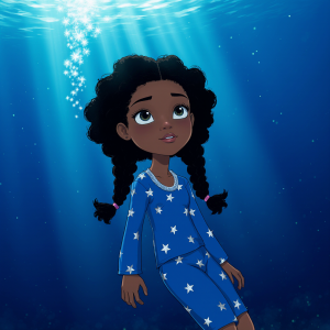 As portas do palácio se abriram lentamente, revelando um salão magnífico iluminado pela luz suave da Estrela do Sono, que flutuava no centro do recinto. Contudo, guardando a estrela, estava uma grande criatura marinha chamada Krampus, o Guardião dos Sonhos. Ele tinha olhos grandes e expressivos que brilhavam com uma luz própria e tentáculos que se moviam graciosamente. Krampus explicou que Luiza precisaria provar que era digna de levar a Estrela do Sono, enfrentando seu maior desafio: mergulhar nas Profundezas da Consciência, onde ela encontraria seus próprios medos e inquietações personificados. Luiza sentiu um calafrio percorrer seu corpo. Todavia, ela se lembrou de tudo o que havia aprendido até então. Com a ajuda de Néctar, ela mergulhou nas profundezas e lá encontrou figuras sombrias que representavam seu medo do escuro, sua preocupação com os outros e sua ansiedade sobre o dia seguinte. Em vez de fugir, Luiza abordou cada figura com gentileza, cantando sua música suave e oferecendo pensamentos de calma e amor. Para sua surpresa, cada figura sombria se transformou em uma luz brilhante e colorida que flutuou até a superfície, tornando-se estrelas marinhas cintilantes.