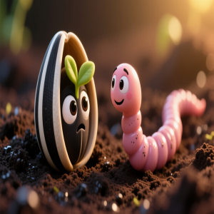 A subida foi lenta, mas incessante. Amora, agora uma pequena plântula, continuava a empurrar, guiada pela luz que ficava cada vez mais forte. Bartolomeu sempre estava por perto, garantindo que o caminho estivesse livre e nutrindo a terra ao seu redor. Finalmente, após o que pareceu uma eternidade, Amora sentiu uma sensação nova: o calor do Sol em suas pequenas folhas. Ela havia conseguido! Ela rompeu a superfície da terra e viu, pela primeira vez, o mundo que o vento tanto descrevera. O céu era azul, as nuvens brancas e o Sol… o Sol era mil vezes mais maravilhoso do que ela havia sonhado. Com o tempo, Amora cresceu e se tornou um girassol magnífico e alto, com uma cabeça cheia de sementes que seguiam o Sol todos os dias. Ela nunca se esqueceu de Bartolomeu. Ele frequentemente subia até suas raízes para conversar, e ela contava a ele como era o mundo lá de cima. Amora aprendeu uma lição de vida inesquecível: o crescimento muitas vezes acontece nos lugares mais escuros e assustadores. Contudo, com coragem, amizade e a disposição para aceitar ajuda, podemos transformar nossos maiores medos em nossa maior força e alcançar o Sol.