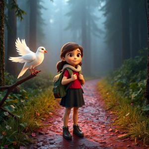 Quando os abriu novamente, ficou surpresa: bem à sua frente, pousada em um galho, estava uma pomba branca de penas reluzentes, que a observava com um olhar sereno e firme, como se quisesse guiá-la.