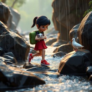De repente, reconheceu um velho carvalho próximo à escola. Com um impulso de alegria, começou a correr. A chuva ia enfraquecendo a cada passo de Amora, e o céu começava a se abrir, permitindo que raios de sol atravessassem as nuvens e iluminassem suavemente o caminho à sua frente.
