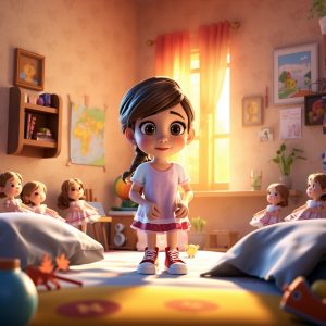 Naquela manhã, ela acordou antes mesmo do despertador. A luz dourada entrava pela janela, iluminando seu quarto cheio de desenhos coloridos e bonecas com vestidos de renda.