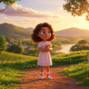Amora tinha 8 anos e vivia em uma cidadezinha tranquila, rodeada por suaves colinas verdejantes e por um rio que sussurrava como uma canção sempre que a brisa o tocava. Ela era uma criança cheia de curiosidade, adorava acordar antes de todos apenas para admirar o nascer do sol e descobrir as cores mágicas que pintavam o céu.