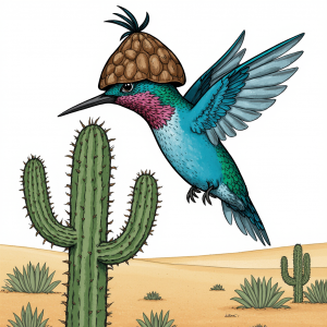 “Beija-flor alérgico, que confusão! Espirra aqui, espirra ali… mas continua feliz assim!”