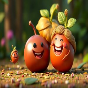 — Há uma árvore muito especial no centro da floresta. Dizem que ela dá não apenas castanhas, mas também sementes de sorte!