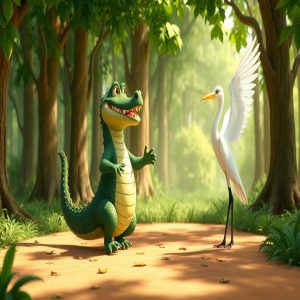 Havia um jacaré chamado Samuel, que morava às margens de um rio largo e cheio de peixes. Diferente dos outros jacarés, que gostavam de caçar, dormir no sol e mostrar os dentes assustadores, Samuel tinha uma paixão secreta: a dança. Ele adorava ver as garças dançando quando abriam suas asas e os macacos pulando de galho em galho como se fizessem acrobacias. Desde pequeno, seu coração batia mais forte ao ouvir o som do vento nas folhas, que para ele parecia música.