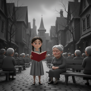 Entretanto, no meio daquela monotonia, vivia uma menina de sete anos chamada Helena. Ela tinha cabelos castanhos presos em duas tranças impecáveis e olhos brilhantes, que guardavam uma centelha de curiosidade que o cinza ao redor não conseguia apagar. Diferente de todos, Helena sentia um puxão interno, um desejo de mover os cantos de sua boca para cima. Às vezes, ao ver um pássaro pousar no galho nu de uma árvore, ela sentia uma vontade imensa de sorrir. Porém, seus pais, com carinho, a corrigiam. “Helena, não é bom chamar atenção. A serenidade é nossa maior virtude”, dizia sua mãe. E seu pai completava: “A alegria exagerada traz a tristeza, filha. É melhor não sentir nada forte.” Helena tentava entender, todavia seu coraçãozinho não concordava.