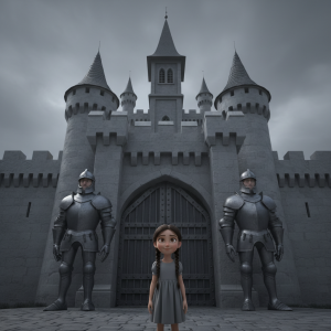 Depois de muitas tentativas frustradas, Helena chegou em frente ao grande castelo no centro do reino. Era o edifício mais cinzento de todos, com torres que perfuravam o céu sem brilho. Dois guardas enormes, com armaduras de um cinza metálico, bloqueavam o portão. Seus rostos eram máscaras de seriedade. Helena sabia que ali morava o Rei, o homem que havia decretado a “Lei da Serenidade” há séculos, após uma grande tragédia ter mergulhado o reino em uma tristeza tão profunda que eles decidiram abolir todos os sentimentos fortes. Este era seu momento de decisão. Ela poderia voltar para casa, guardar o livro e tentar ser como todo mundo. Entretanto, a imagem do sol amarelo e do arco-íris a chamava. Se ela não conseguisse com o povo, talvez conseguisse com a fonte de toda aquela serenidade forçada. Respirando fundo, ela caminhou em direção aos guardas. “Eu preciso falar com o Rei”, disse ela, sua voz um pouco trêmula. Os guardas riram, um som seco e estranho, como pedras roçando. “O Rei não recebe a ninguém, especialmente uma menina com ideias perigosas”, disse um deles. Helena sentiu o medo gelar seus pés. No entanto, ela olhou para o livro escondido e lembrou-se da esperança que ele lhe dava. Ela não estava mais sozinha naquela missão.