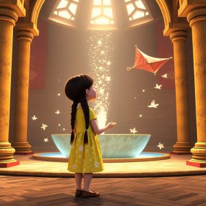 No centro do salão, uma fonte mágica jorrava pequenas imagens flutuantes: crianças brincando, famíEsters se abraçando, pessoas ajudando umas às outras.