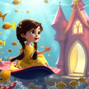 Seguindo o brilho de um peixe dourado que voava pelo ar como se fosse um pássaro, Ester e o tapete chegaram ao fundo do mar. Não havia água sufocando, apenas uma luz azul suave que os envolvia.