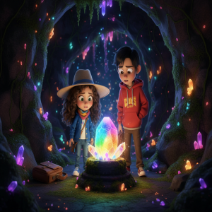 Com cuidado, os irmãos desceram pela passagem sinuosa. As paredes eram cobertas por cristais que refletiam a luz da lanterna, criando um espetáculo de cores vibrantes.