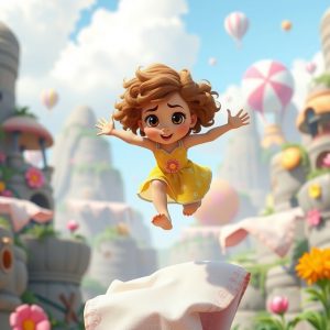 Sueli decidiu aceitar a missão. O primeiro desafio foi atravessar o Vale dos Guardanapos. Guardanapos gigantes flutuavam como asas, e Sueli precisou pular de um em outro para atravessar. Foi assustador, porém ela conseguiu, rindo a cada salto bem-sucedido.