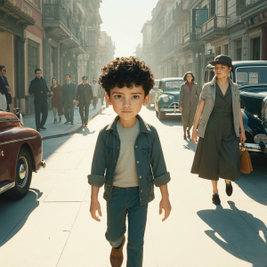 Pedro caminhou pelas ruas da cidade, observando tudo ao seu redor com curiosidade e medo. As construções eram as mesmas que ele conhecia, porém pareciam novas, com cores mais vibrantes. As pessoas o olhavam com desconfiança, provavelmente por causa de suas roupas modernas.